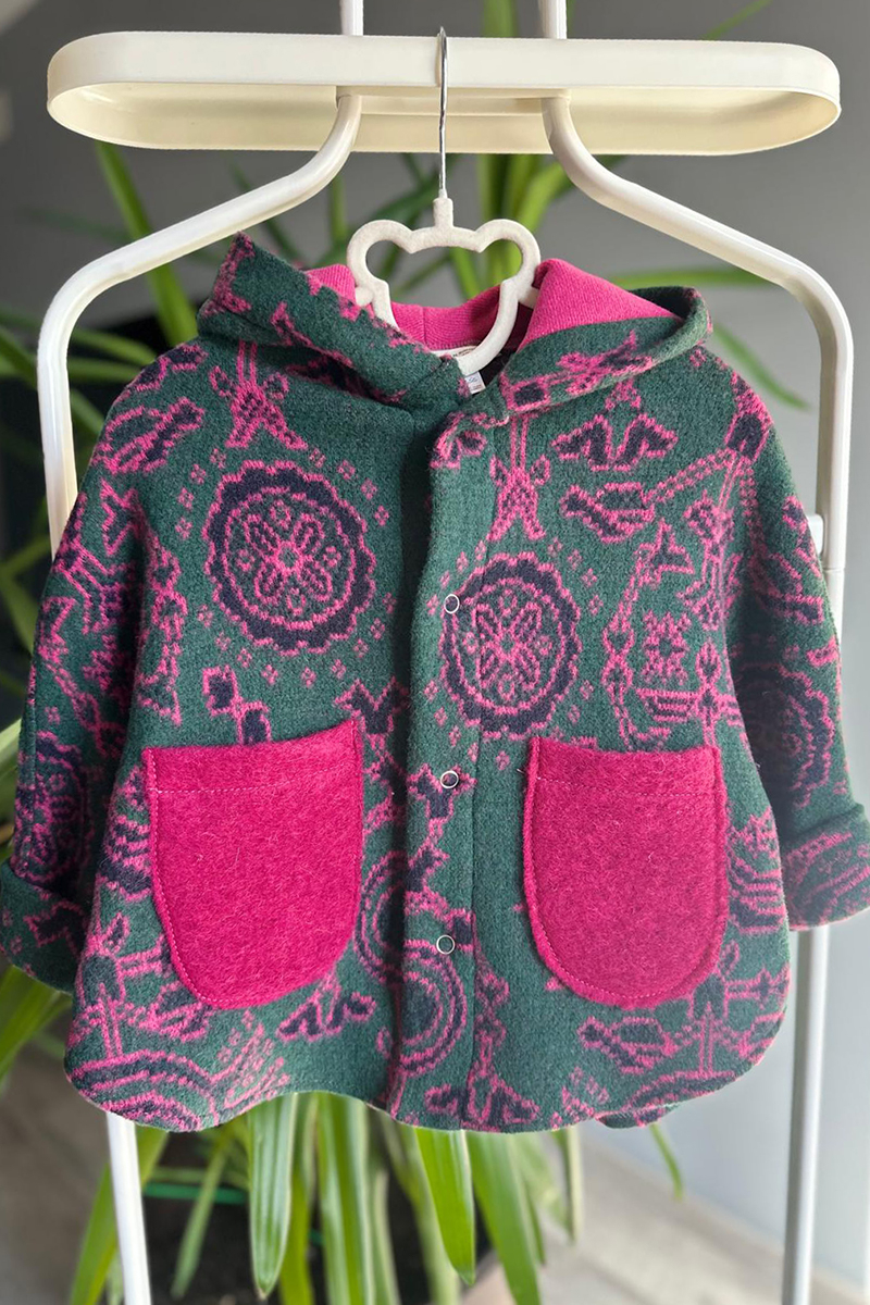 Capă copii din lână - Fucsia Motive