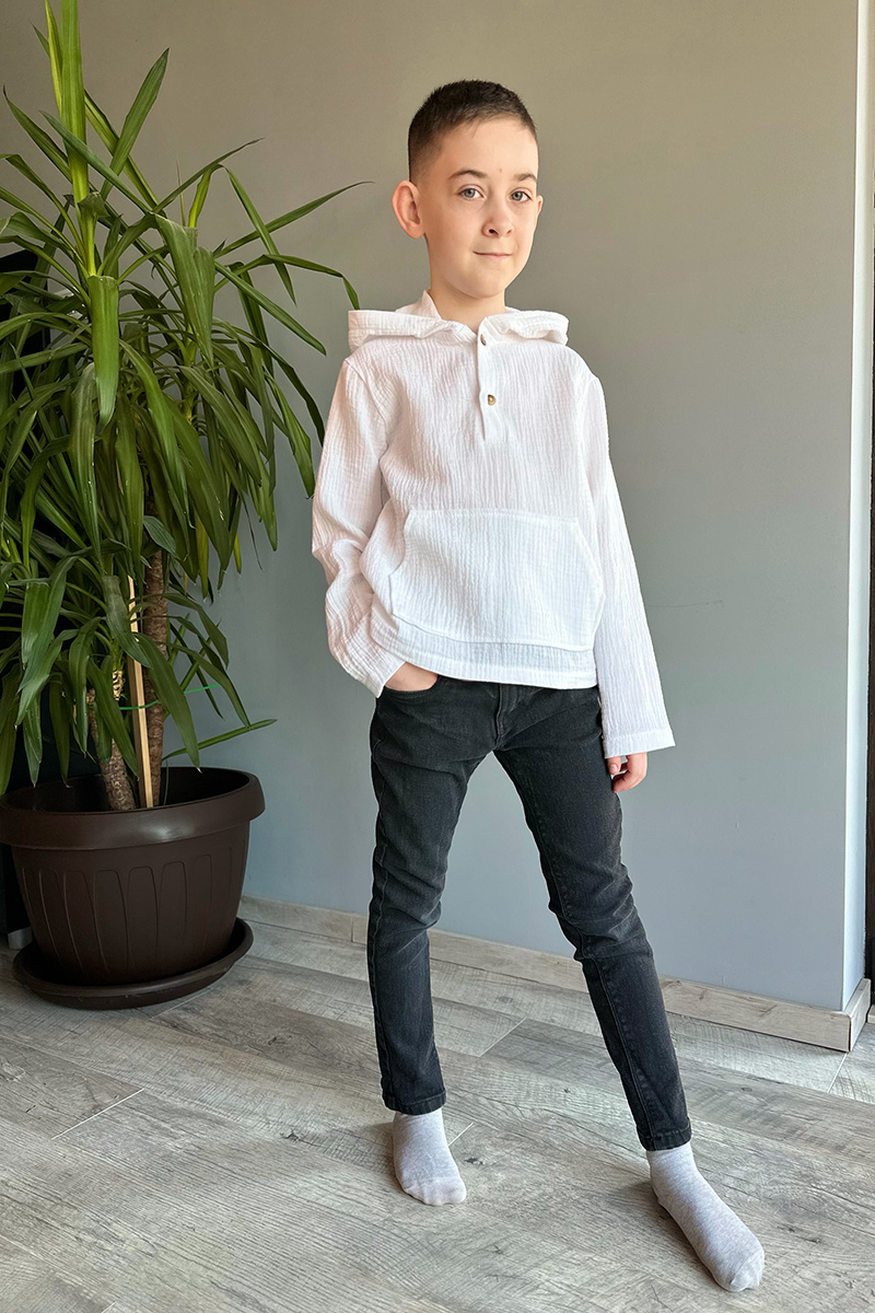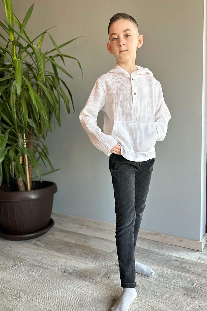 • Cămașă tip hanorac din muselină 100% bumbac