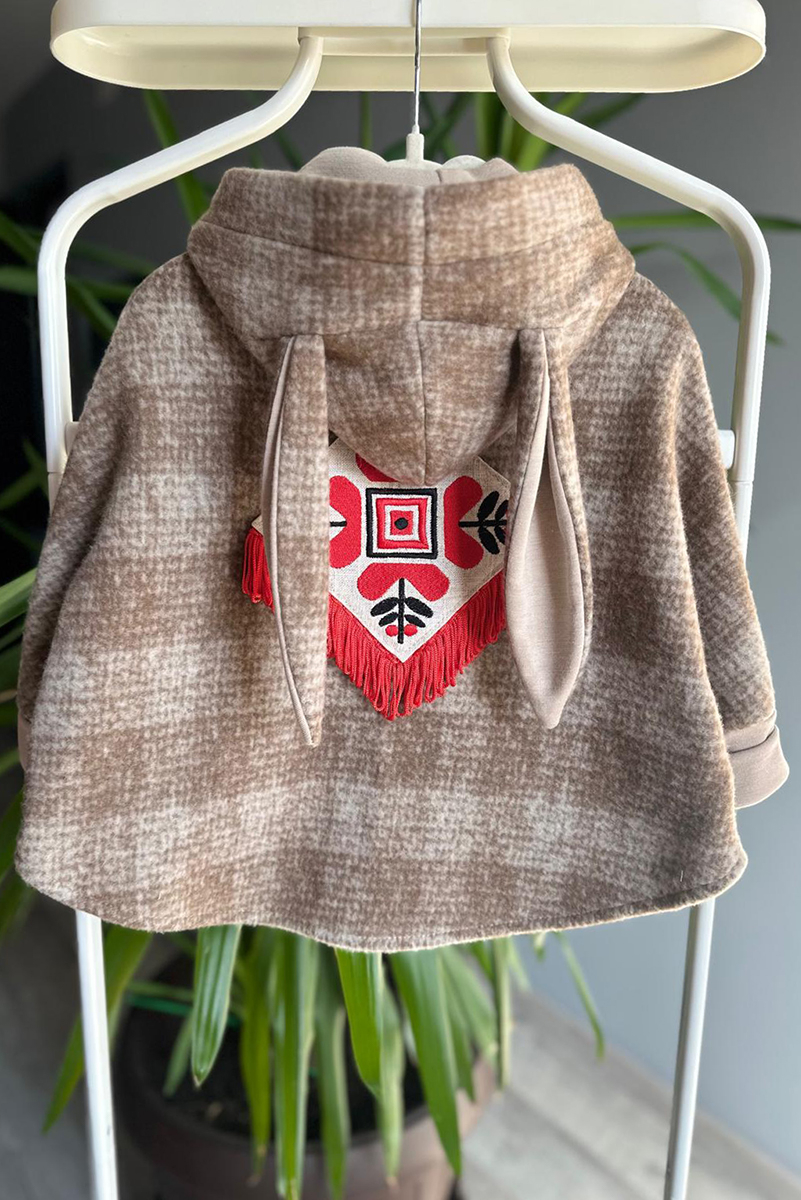 Îmbrățișează sezonul rece cu această capă adorabilă din lână naturală, creată special pentru confortul și libertatea de mișcare a celor mici. Cu un croi lejer și glugă practică, este ușor de îmbrăcat și purtat în orice moment al zilei. Închiderea frontală cu capse o face ideală pentru copiii activi, iar buzunarele aplicate cu buline din lana colorată si ureciusele de iepuras adaugă o notă jucăușă și stilată.
