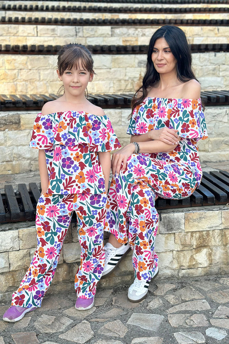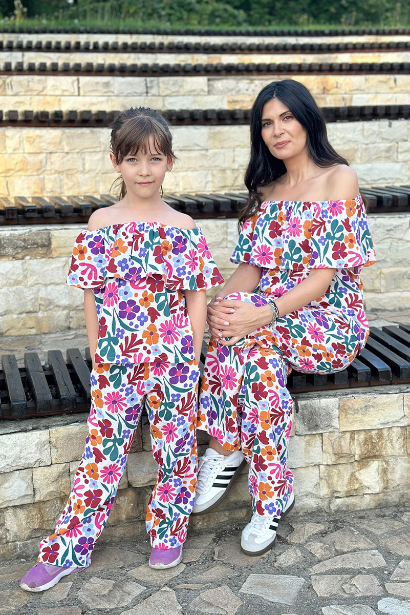 - Compleul fetitei este identic asortat cu cel al mamei.
