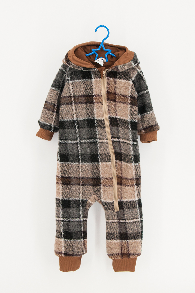 Salopetă din Lână cu Fermoar și Glugă - Carouri Maro