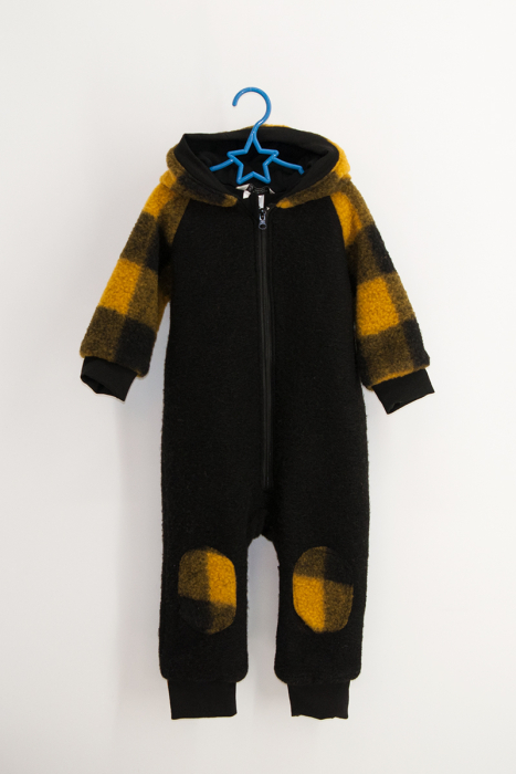 Salopete din Lână - Salopetă din Lână Fiartă Fara Dublura - Negru/Mustar