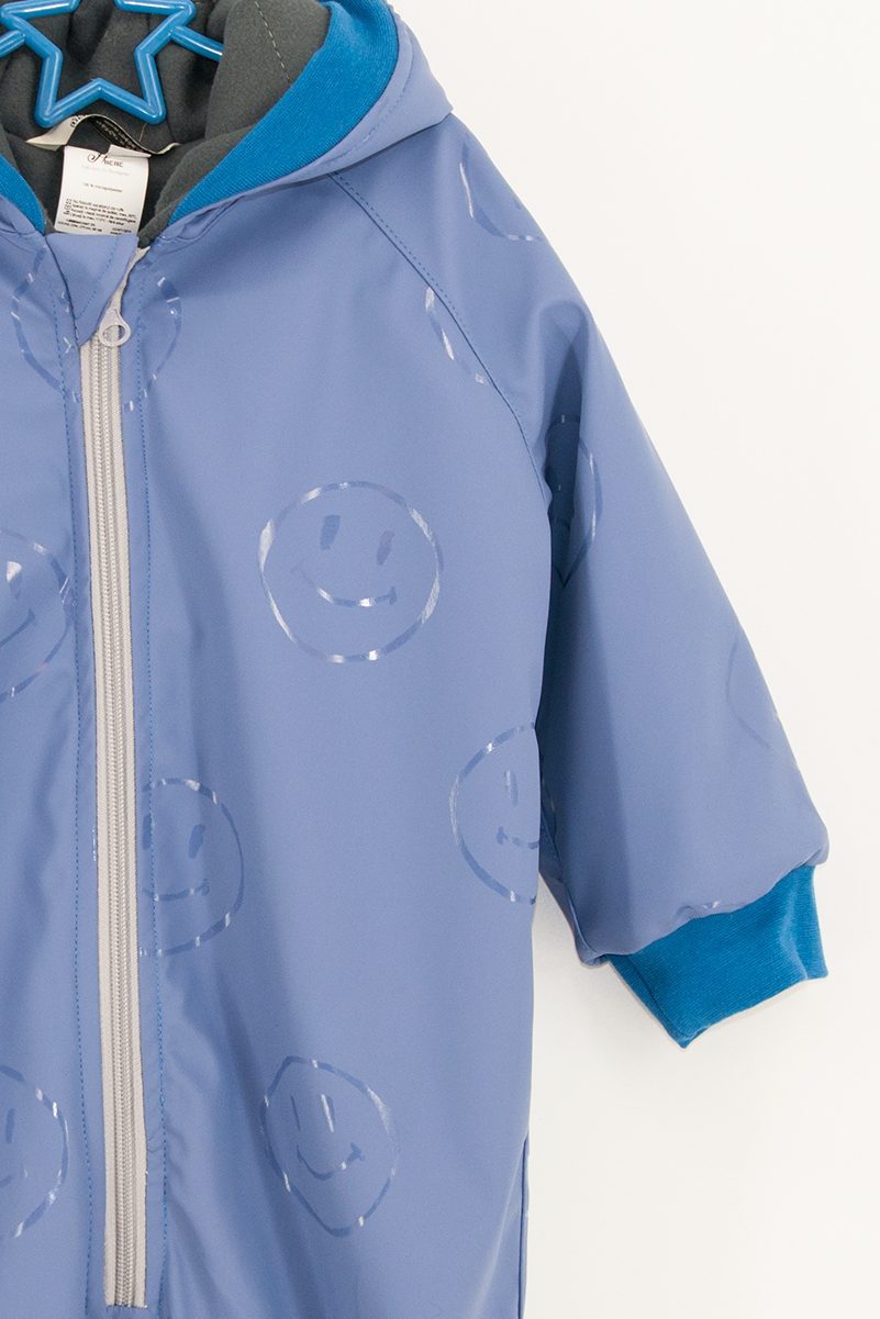 Salopetă Overall cu fermoar și glugă este confecționată din 3 straturi: în exterior material impermeabil, la mijloc lână fiartă (boiled fleece), iar în interior polar.