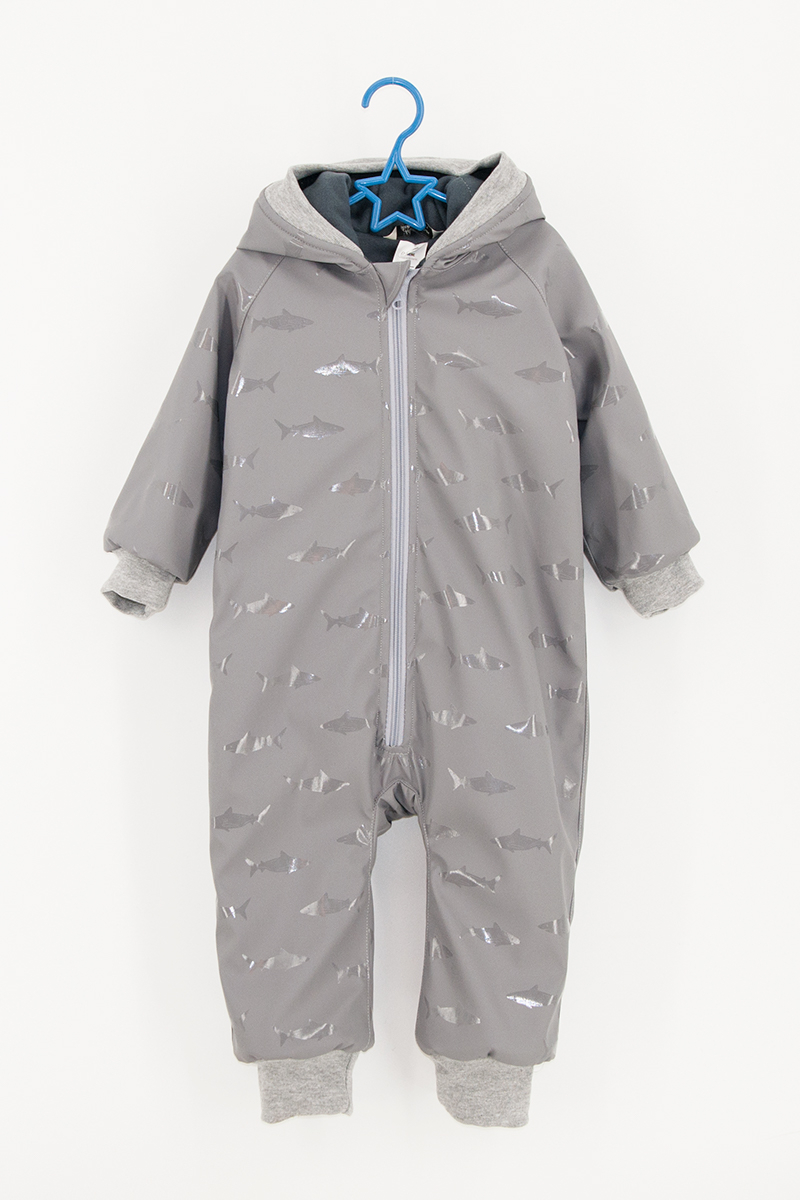 Salopetă Overall cu fermoar și glugă este confecționată din 3 straturi: în exterior material impermeabil, la mijloc lână fiartă (boiled fleece), iar în interior polar.
