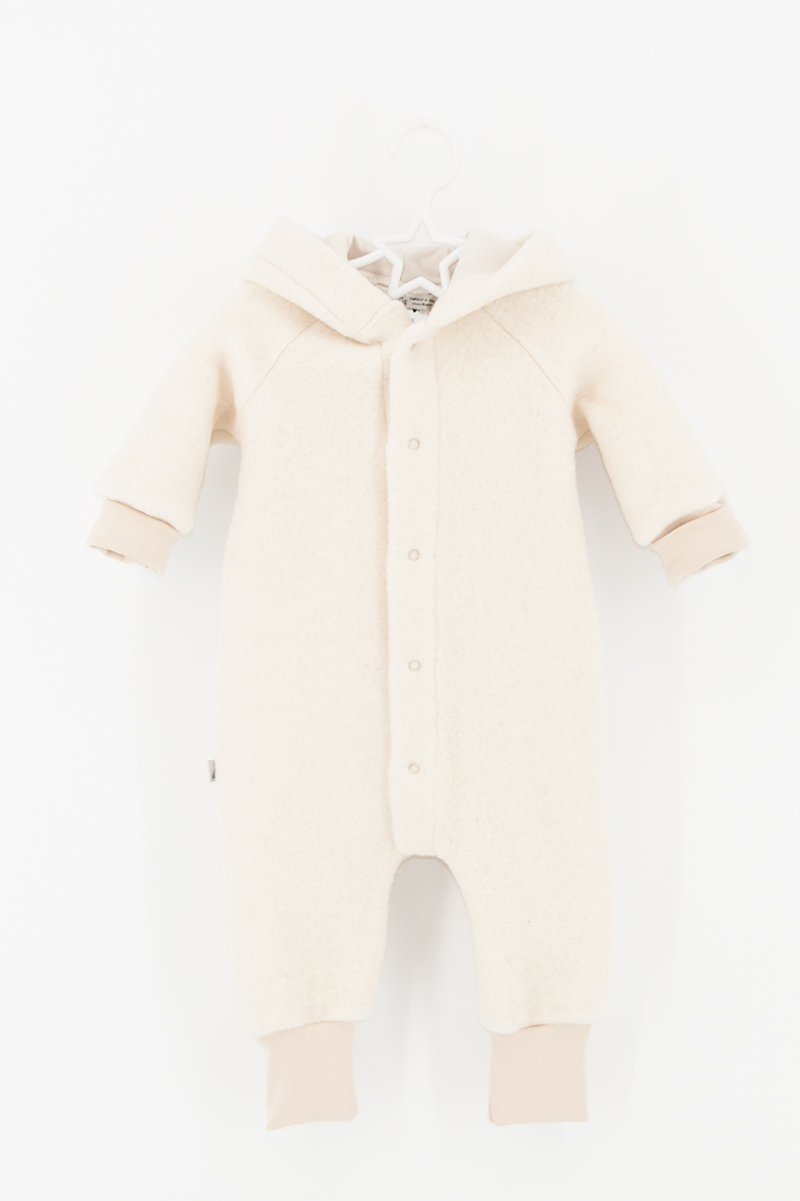 Salopeta Overall cu fermoar și glugă este confecționată din lână fiartă (boiled fleece), călduroasă, care reglează temperatura corpului, lăsând pielea copilului să respire. Este rezistentă, se îmbracă ușor și asigură un confort termic sporit, fiind creată special pentru micuţii curioși și veseli cu vârsta cuprinsă între 1 și 6 ani. Este extrem de potrivită perioadelor reci, purtată ca și strat exterior, fiind un bun izolator termic chiar și la temperaturi cu minus grade.