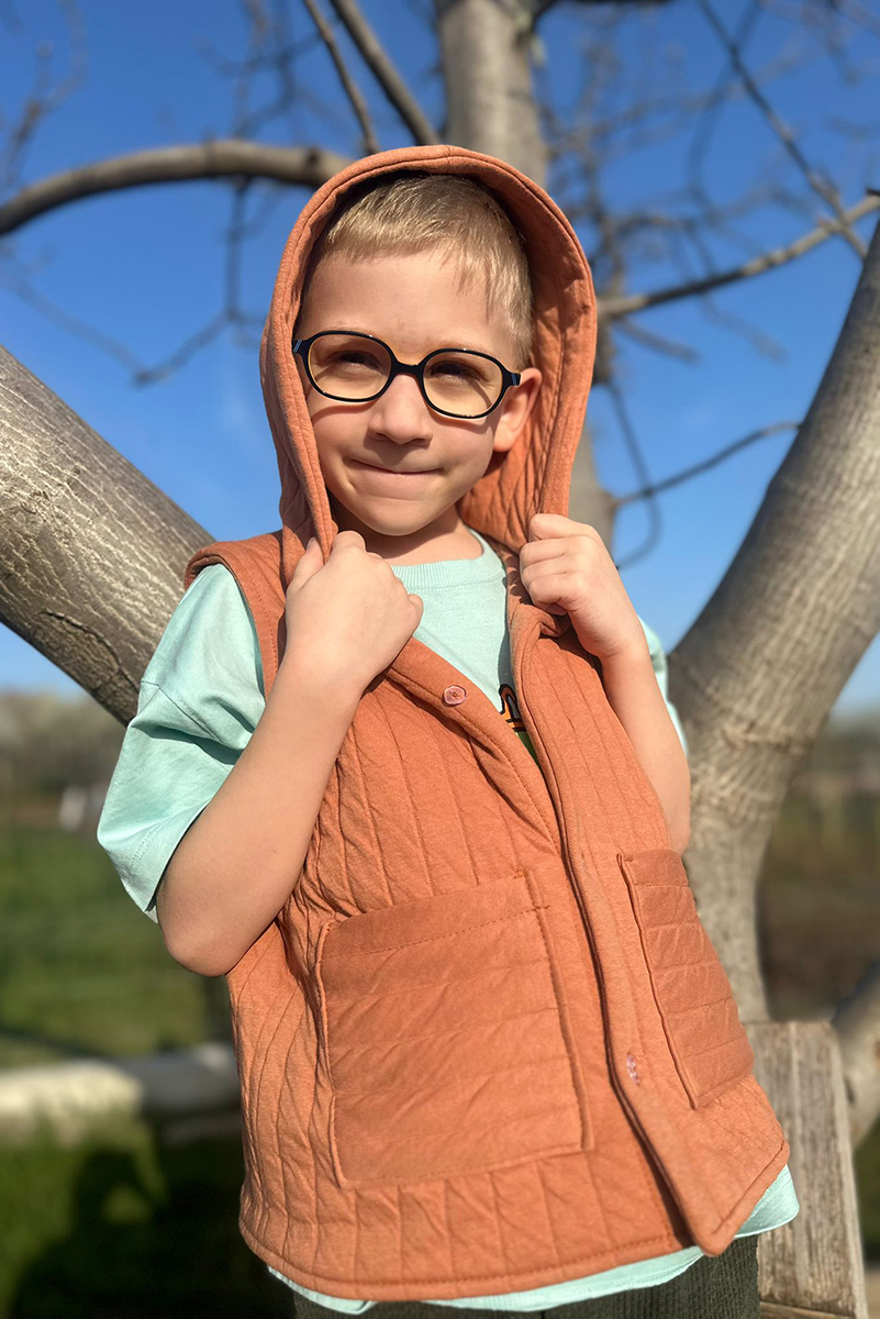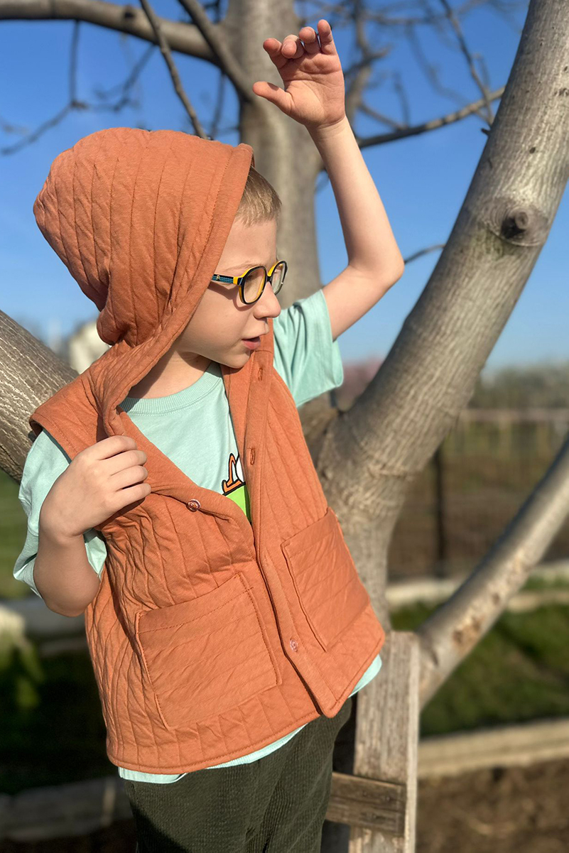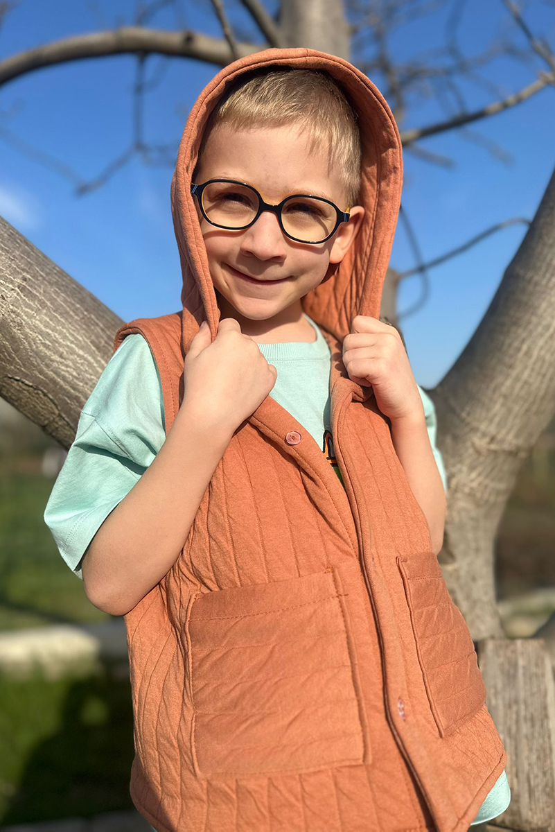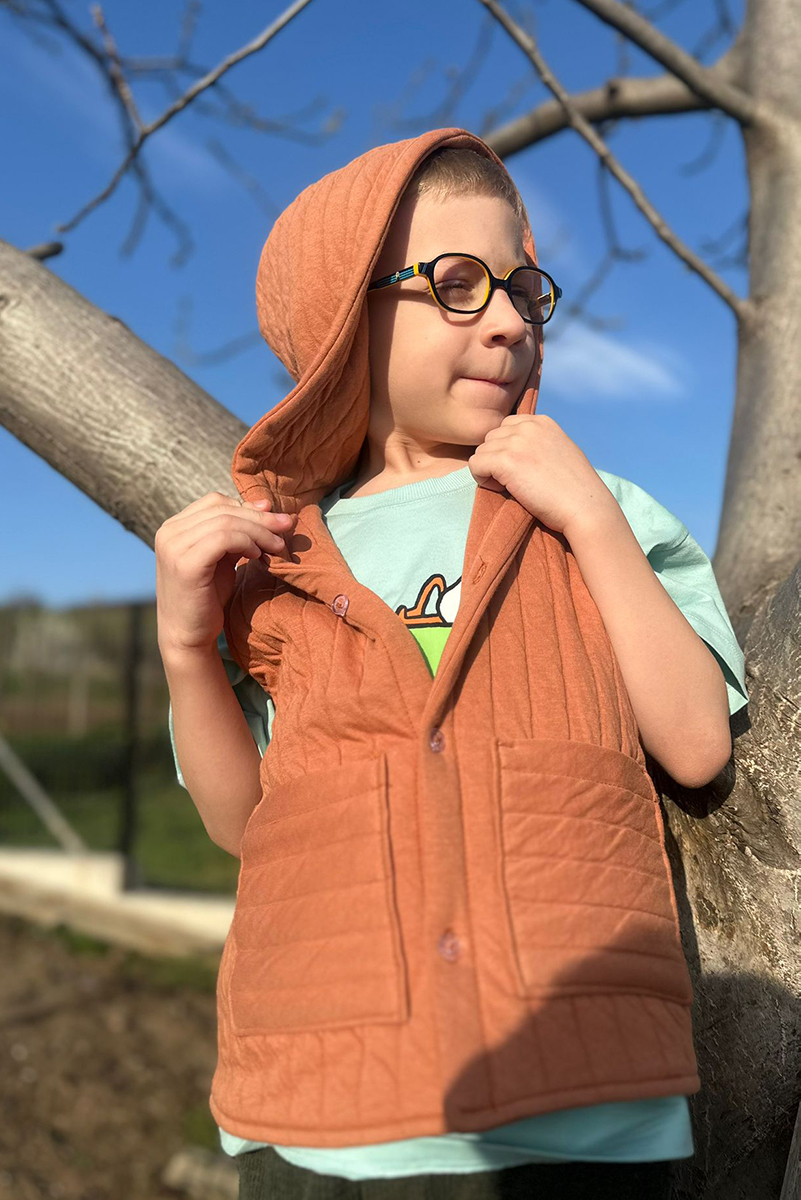 - Vesta dispune de o glugă călduroasă,astfel copilul se va bucura atât de confort termic, cât și de o aventură pe cinste alături de vesta preferată.