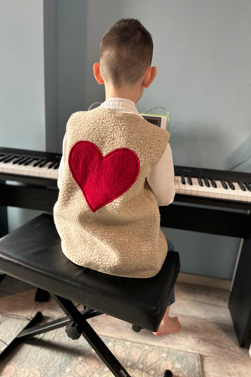 Vesta din lână sherpa pe suport de bumbac , reprezintă alegerea ideală când vine vorba de o sursă extra de căldură pentru micuții jucăuși în aer liber.  Croiul este modern și adaptat pentru toate varstele. Este potrivită atât ca strat exterior în zilele de toamnă/primăvară, cât și ca strat intermediar în zilele friguroase de iarnă.